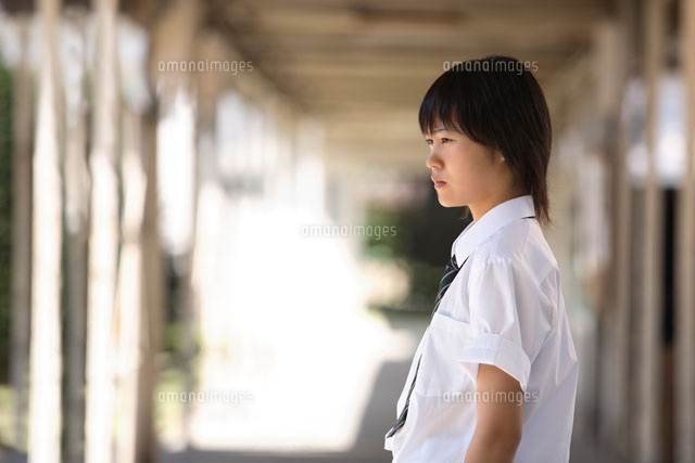 学校内の渡り廊下にいる女子学生 02383000067 の写真素材 イラスト