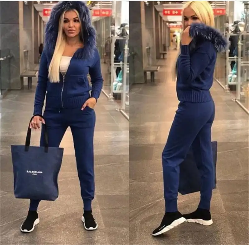 ニットのトラックスーツフード付きセーターカジュアルニットスーツ女性